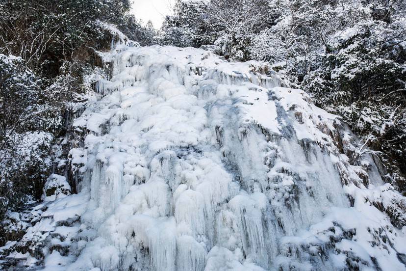 Lo spettacolo della grandi cascate di ghiaccio nel villaggio di Gulong, nei pressi di Huangshan, provincia di Anhui.