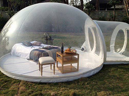Se vi siete innamorati dell’hotel finlandese a forma di Igloo in vetro amerete allora, e forse perfino di più, questa tenda. La tenda è prodotta dalla Holleyweb ed è una tenda gonfiabile. E’ realizzata in PVC ed è simile ai palloni del bubble soccer: deve essere gonfiata ad ogni utilizzo. Ha però un pre-ingresso che consente di entrare ed uscire senza azionare ogni volta il ventilatore di gonfiaggio.