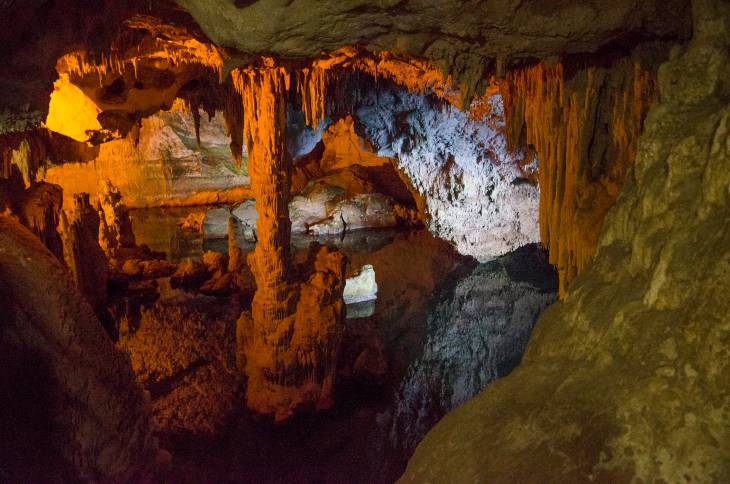 Le Grotte sono lunghe circa 4 km, ma solo poche centinaia di metri sono visitabili. All’interno ci sono conformazioni calcaree come stalattiti e stalagmiti e un lago salato di 120 mt di lunghezza. Le grotte sono visitabili dal 1 aprile al 31 ottobre ed il biglietto costa 13 euro. C’è chi sostiene che sia più bella la scalinata delle grotte. Insomma, non perdetevela!