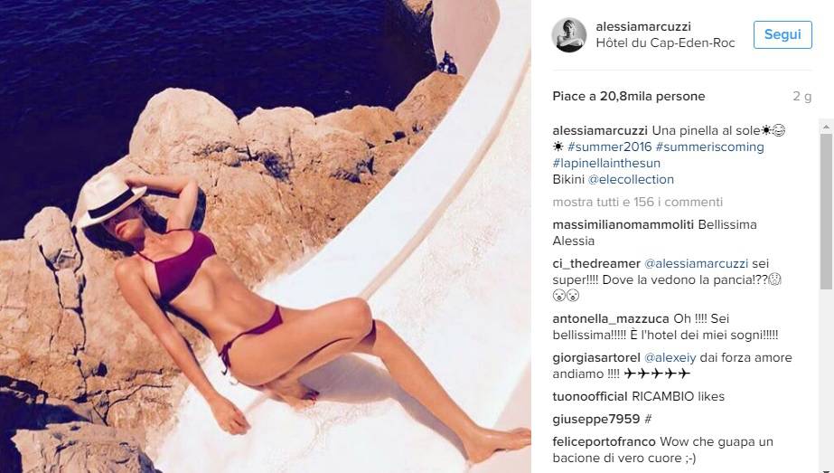 Ma al di la del tempo Alessia Marcuzzi come ogni vip 2.0 ha il suo profilo twitter e instagram dove postare foto e opinioni. E la conduttrice romana in vacanza per un weekend in Costa Azzurra ha pensato di postare su Instagram la sua foto in bikini sdraiata su uno scoglio dell’Hotel du Cap Eden.
