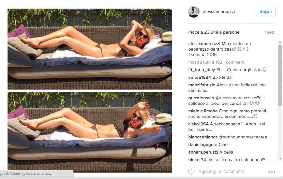 La foto accompagnata dalla didascalia ‘Una pinella al sole #summer2016 #summeriscoming #lapinellainthesun” – pinella è il soprannome di Alessia su twitter – ha fatto il pieno di like e commenti. I fan della Marcuzzi sono impazziti per quelle foto che esaltano le curve mozzafiato della conduttrice. La bella Alessia quindi continua ad essere una delle presentatrici più amate della televisione e prima di toglierle conduzioni di programmi sarebbe opportuno pensarci bene!