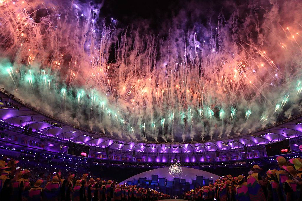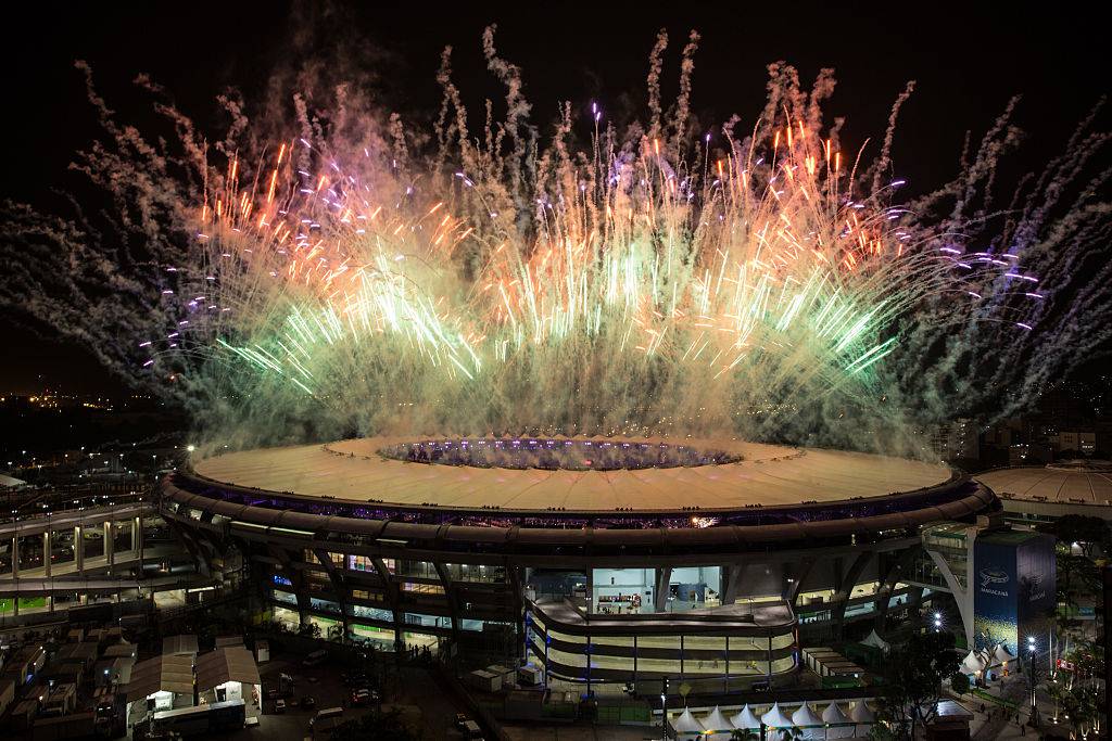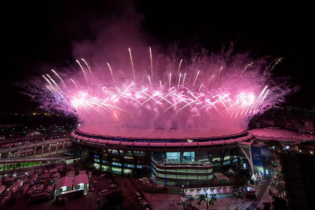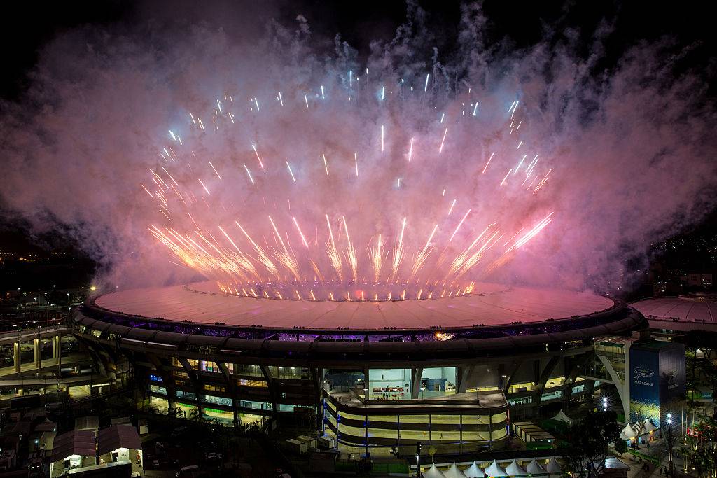 Olimpiadi di Rio, fuochi di artificio sul Maracanà (Mario Tama/Getty Images)