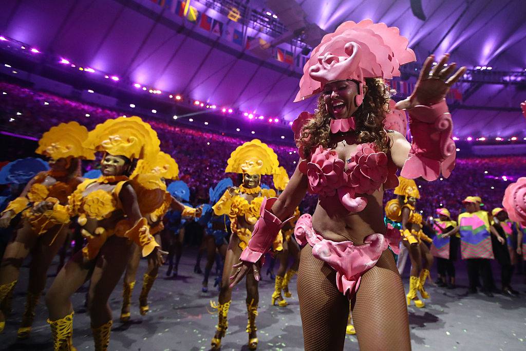 Sul parterre del Maracanà ha sfilato la bellissima modella brasiliana Gisele Bundchen, indossando un abito metallizzato, sulle note della celebre “Garota de Ipanema”, cantata da Daniel Jobim, nipote di Tom Jobim, che scrisse la canzone con Vinicius de Moraes. L’inno brasiliano è stato cantato da Paulinho da Viola. La festa è proseguita con balli e canti. Ad animare lo spettacolo i ballerini delle storiche scuole di samba in costumi coloratissimi.  Sul palco sono saliti i popolari cantanti brasiliani Zeca Paradinho, Regina Casé, Jorge Ben Jor, che hanno intonato i loro brani più famosi, facendo cantare tutto lo stadio.