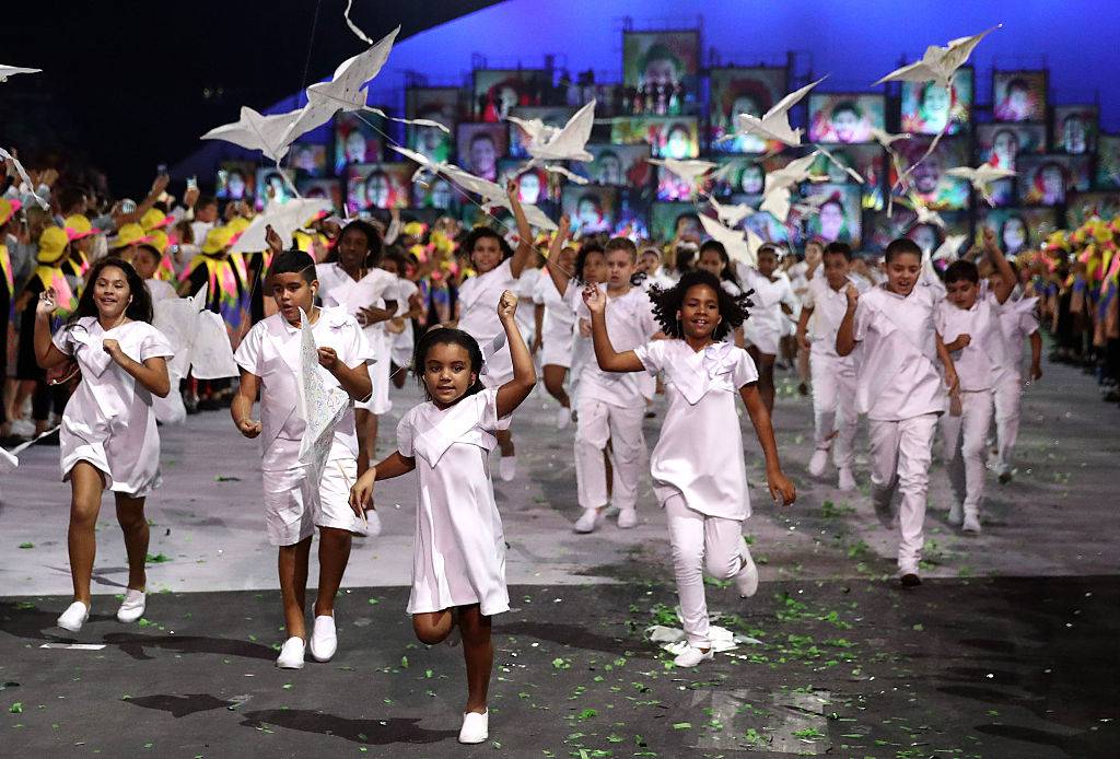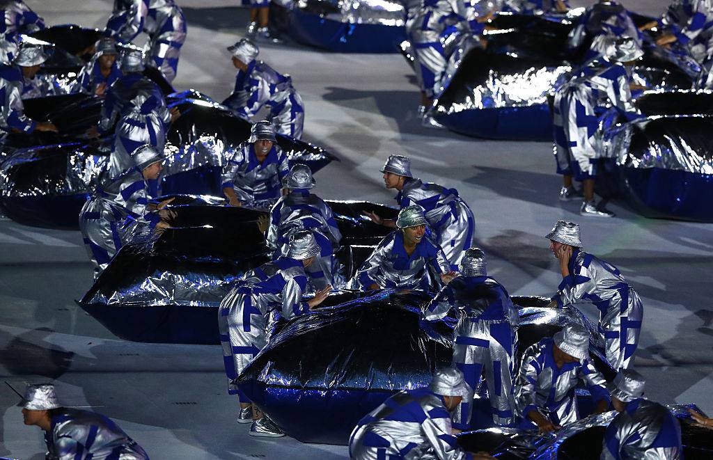 Una festa low cost, molto colorata, e con un forte messaggio ambientalista. Nella cerimonia è stata raccontata la nascita del Brasile, dai microorganismi unicellulari, con le prime forme di vita, agli insetti e animali più complessi. A seguire il racconto della nascita della Foresta Amazzonica, polmone della Terra, e gli uomini di diverse etnie che hanno popolato il Brasile: gli indios, l’arrivo dei conquistatori portoghesi, gli schiavi portati dall’Africa. Poi il messaggio ambientalista, con i rischi del riscaldamento globale e il pericolo che molte zone del mondo, compresa Rio De Janeiro possano finire sott’acqua.