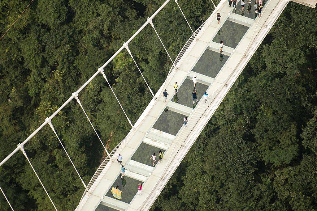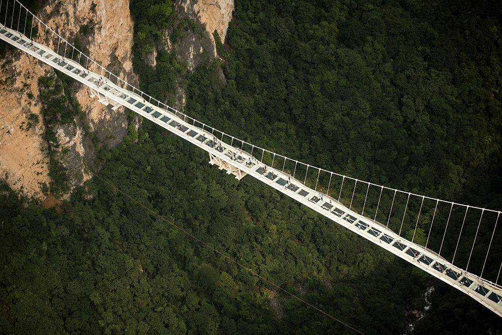 Il nuovo ponte è stato aperto al pubblico il 20 agosto. Solo chi non soffre di vertigini può camminarci sopra. Il ponte sospeso in vetro è lungo 430 metri e si trova ad un altezza di 300 metri. Camminarci sopra è un’esperienza da paura. La passerella è larga 6 metri ed formata da 99 pannelli di cristallo trasparente, a tre strati sovrapposti, per assicurarne la robustezza. Camminandoci sopra e guardando quello che c’è sotto i piedi si vede comunque molto bene il vuoto sotto il ponte.