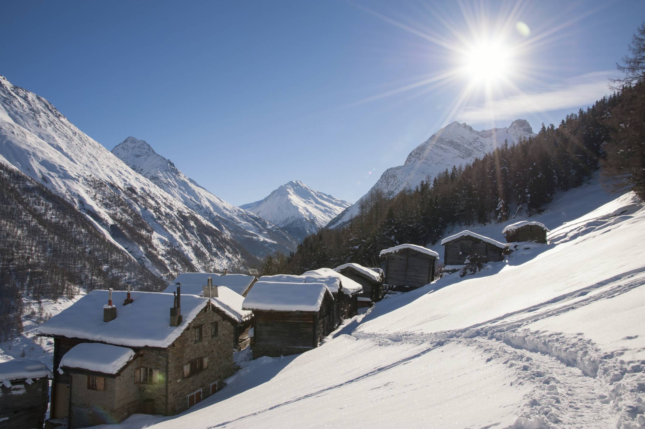 Ancora in Svizzera, è da visitare il borgo di Grimentz, nella Val d’Anniviers. Qui il paesaggio è costellato di deliziosi chalet, circondati da boschi innevati e alte vette. Un paesaggio che fa venire voglia di tuffarsi nella neve. Tanto poi ci si può scaldare con le prelibatezze enogastronomiche del posto, su tutte il Vin du Glacier.