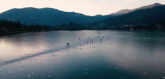 Questo inverno, in occasione del freddo eccezionale che ha investito l’Italia, il lago si è ghiacciato, permettendo agli abitanti del posto di pattinare sulla sua superficie e assumendo un aspetto spettacolare. Le immagini della superficie ghiacciata del lago e dei pattinatori sono state riperse con il drone dall’agenzia di comunicazione White Hub, di cui vi proponiamo il video pubblicato su Facebook.