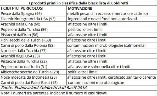 Presentata al Forum internazionale dell’Agricoltura e dell’alimentazione di Cernobbio, questa classifica dei cibi più pericolosi, stilata da Coldiretti, parla di tantissimi allarmi scattati nell’Unione Europea e anche in tutto il mondo visto che le notifiche per prodotti non conformi, soltanto in quest’anno, sono state la Turchia con 276 avvisi; la Cina 256; l’India 194; gli Stati Uniti 176; la Spagna 171.