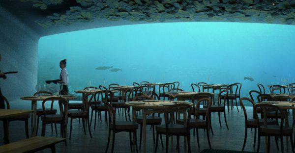A realizzarlo sarà lo studio architettonico Snohetta e il ristorante sarà più o meno strutturato così: l’ingresso sarà in superficie e lì vi sarà il guardaroba. Piano piano che si scende verso il basso si incontrerà prima la zona bar e poi a 5 metri di profondità la sala da pranzo dove gli ospiti si potranno sedere e godere del panorama grazie ad una gigantesca finestra in vetro di 11 metri circondata da mura molto spesse per concedere ai visitatori un pranzo o una cena senza avere freddo e soprattutto protetti dalla forza delle correnti e della pressione dell’acqua.