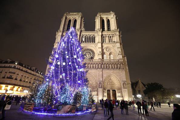 Albero di Natale davanti alla Cattedrale di Notre Dame a Parigi.
