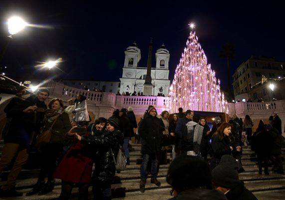 L’albero di Natale sulla Scalinata di Trinità dei Monti, in piazza di Spagna a Roma.
