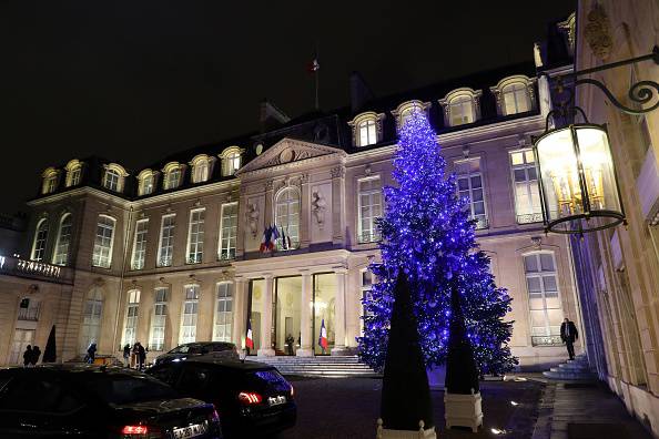 Albero di Natale nel cortile del Palazzo dell’Eliseo a Parigi.