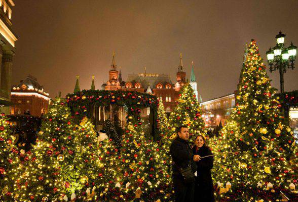 Alberi di Natale in piazza del Maneggio a Mosca, vicino al Cremlino.