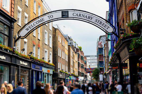 Spostiamoci a Carnaby Street via diventa celebre negli anni ’60 e per quanto oggi decisamente più turistica mantiene ancora negozi indipendenti e di nuovi designer. Con le sue oltre 10 strade circostanti questo angolo di Londra offre oltre 150 marchi e 50 bar e ristoranti.
