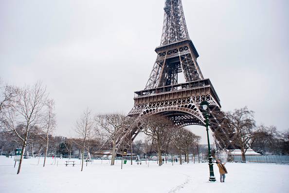 Parigi sotto la neve, Campo di Marte e la Tour Eiffel (THOMAS SAMSON/AFP/Getty Images)