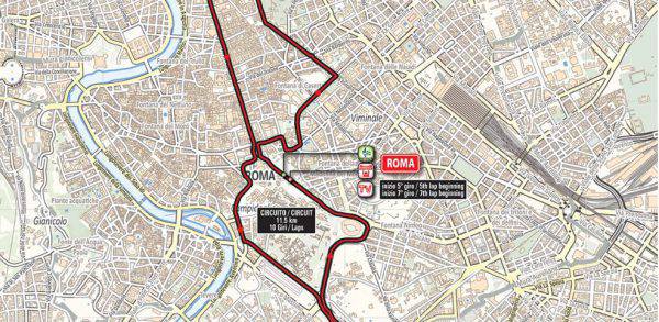 La gara si svolgerà per le strade della Capitale in un percorso lungo 11,5 km da ripetersi per 10 giri per un totale di 115 km. La partenza sarà alle 15.55 a via dei Fori Imperiali e sempre a via dei Fori Imperiali è previsto l’arrivo.