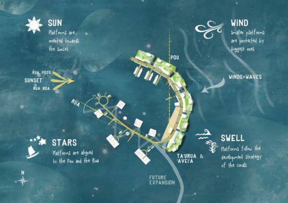 L’isola indipendente di Varyon e le sue strutture galleggianti saranno realizzate con materiali ecologici. Gli edifici verranno costruiti con bambù polinesiano, fibra di cocco, legno, plastica e metallo riciclati, mentre i tetti saranno ricoperti da vegetazione e pannelli solari. Tutto con il minor impatto ambientale possibile.