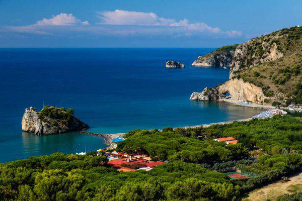 Immerso nel Parco Nazionale del Cilento e affacciato su una spettacolare costa rocciosa di insenature, grotte, baie e calette nascoste, Palinuro ha uno stupendo mare cristallino dai colori turchese e smeraldo. Si arriva qui in autobus da Napoli, senza cambi, da 24 euro. Da Salerno sono 20 euro.