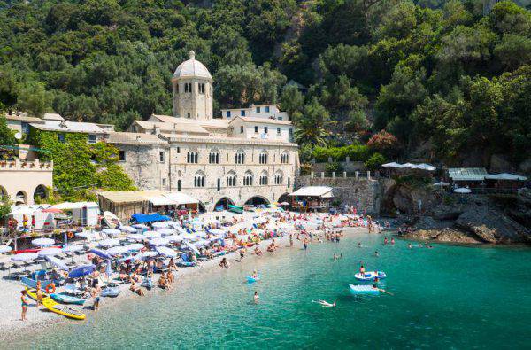 Restando in Liguria, un’altra spiaggia meravigliosa, molto amata anche dagli italiani è quella dell’Abbazia di San Fruttuoso, situata sul promontorio di Portofino, nel comune di Camogli. La baia dove di apre la spiaggia di sassi, bagnata dal mare limpidissimo color smeraldo, è dominata dalla suggestiva abbazia medievale e chiusa dal costone roccioso del promontorio ricoperto dalla vegetazione mediterranea. Si arriva qui solo via mare, con trasporti organizzati da Camogli o Portofino. La spiaggia di San Fruttuoso è Bandiera Blu.