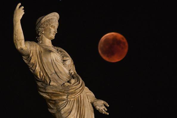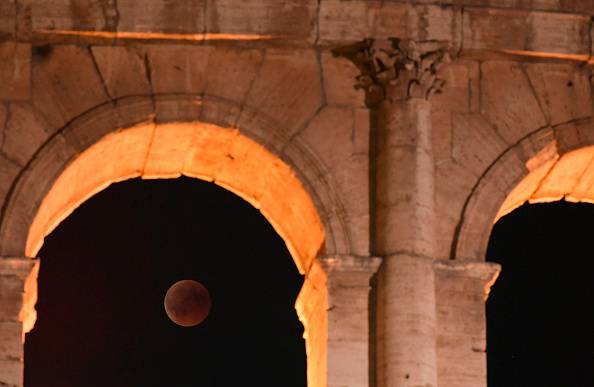 L’eclissi di luna tra gli archi del Colosseo, Roma (TIZIANA FABI/AFP/Getty Images)