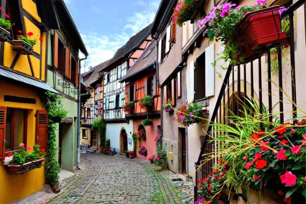 Eguisheim è un caratteristico villaggio francese della regione storico culturale dell’Alsazia, oggi regione amministrativa di Grand Est. Si trova a sud della cittadina di Colmar, nel dipartimento dell’Alto Reno. Una zona che per secoli è stata contesa tra Francia e Germania, influenzata da entrambe le culture e lingue. Ne è risultato un territorio incantevole, di dolci colline ricoperte dai filari dei vigneti, borghi incantevoli, con le casette a graticcio tipiche del medioevo, dipinte di tanti colori. Conosciamo la bellezza delle città di Colmar e Strasburgo e il caratteristico borgo di Riquewihr, che ha ispirato il film di animazione, la Bella e la Bestia. Qui, invece, vi portiamo nel favoloso paese di Eguisheim, simile a Riquewihr con le sue casette variopinte, ma unico nella sua conformazione e nella disposizione degli edifici, a cerchio intorno alla piazzetta centrale. Visitare questo borgo vi porterà davvero dentro una favola. Eguisheim è considerato il villaggio più bello di Francia.