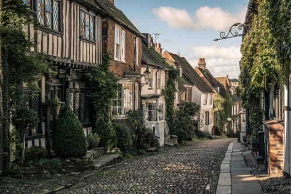 In Inghilterra un villaggio stupendo, molto caratteristico è quello di Rye, si trova nel Sud-est del Paese, nell’East Sussex. Rye è un antico borgo marinaro affacciato sulla Manica, che era in una posizione strategica nel Medioevo, mentre oggi si trova a qualche chilometro dal mare, perché nei secoli le acque si sono ritirate. È uno dei borghi più belli d’Inghilterra, con stradine acciottolate, edifici in pietra, case a graticcio ricoperte di edera. Più a valle c’è il porticciolo e la spiaggia soggetta alle maree. Il borgo si trova ad un’ora circa da Londra. Rye è considerato il borgo più bello d’Inghilterra.