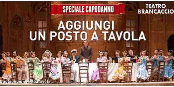 Il musical Aggiungi un posto a tavola al Brancaccio. Anche il Brancaccio per Capodanno 2019 a Roma propone una classica commedia musicale di Garinei e Giovannini: Aggiungi un posto a tavola. Gianluca Guidi è Don Silvestro, Edy Bergamo Consolazione. Con Orchestra dal vivo. Per la sera di Capodanno fra i vari tagli di biglietti c’è l’opzione vip che vi permetterà di avere buffet nel foyer prima dell’inizio dello spettacolo e all’intervallo. A mezzanotte poi tutti a festeggiare il nuovo anno con la Compagnia. Maggiori info e biglietti qui.