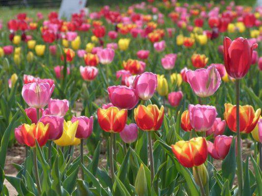 Il campo misura 2 ettari ed espone circa 450 varietà di tulipani. I bulbi sono stati piantati lo scorso novembre e ora sono cresciuti e pronti per essere ammirati. La fioritura dura solo alcune settimane, pertanto se volete visitarlo dovete affrettarvi da organizzare la vostra gita.