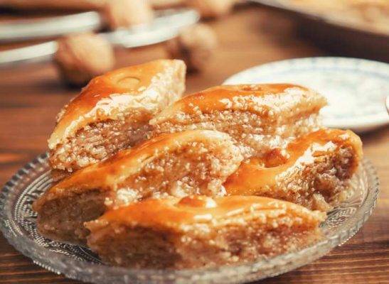 Come si cucina il Baklava? La ricetta, più antica, risale al 1330 e si trova in un libro di cucina cinese. Comunque, la preparazione prevede diversi strati sottilissimi di pasta fillo che vengono imburrati e messi in una teglia e imbevuti di zucchero e miele. Farciti poi con noci o pistacchi. La forma tipica è quella a triangolo. La tradizione di alcune culture vuole poi che gli strati siano 33 come gli anni della vita di Cristo.