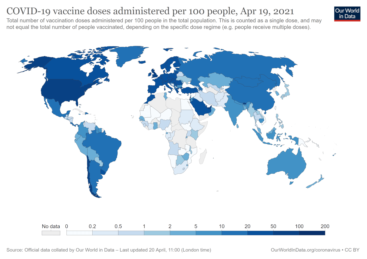 La campagna di vaccinazione anti-Covid prosegue in tutto il mondo, ma a differenti velocità. Se i Paesi più ricchi, pur con qualche intoppo, procedono abbastanza spediti, quelli più poveri e con meno dosi di vaccini sono ancora molto indietro.