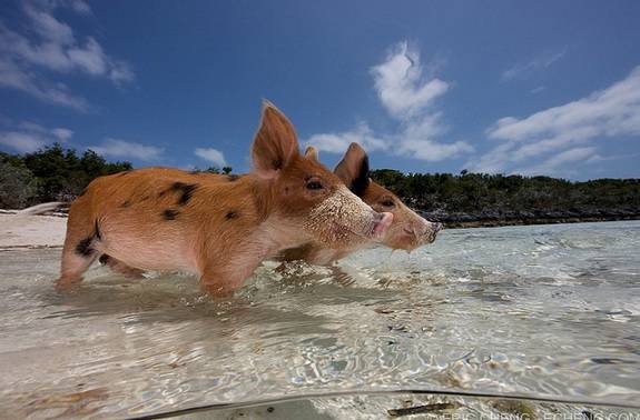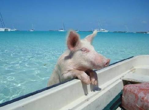 Una cosa è certa. I maialini di Pig Beach vengono nutriti dai turisti, stanno benissimo e si divertono come pazzi a nuotare in uno dei luoghi più belli del mondo, le Bahamas.