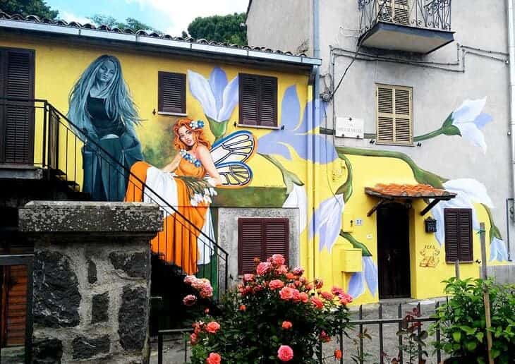 I tantissimi murales, 43 al momento, che adornano le mura delle case di Sant’Angelo sono uno spettacolo per gli occhi da gustare girovagando per il paesino o seguendo i percorsi indicati. Una mappa identifica tutte le opere presenti, oltre alle attività dove poter mangiare o dove fermarsi a dormire. Già perché da quando Castel Sant’Angelo è diventato il Paese delle fiabe sono tornati i turisti ed è stato rilanciato il turismo.