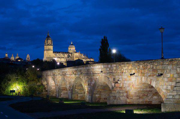 Nella visita alla città di Salamanca non può mancare la tappa al Ponte Romano. Il ponte è in pietra e risale al I-II secolo d. C., l’attribuzione dell’epoca non è certa, anche se la tesi più probabile è quella che lo attribuisce all’imperatore Traiano, tra i fautori della Via dell’Argento, la Vía de la Plata, con la quale i romani unirono il nord e sud della Spagna e che passa proprio per Salamanca. Il Ponte Romano è formato da 26 arcate, è lungo 176 metri e largo 3,70 metri. Attraversa il fiume Tormes e offre una vista eccezionale sulla Vecchia e Nuova Cattedrale. Di notte il ponte è illuminato sopra e sotto le arcate diventando ancora più bello e affascinante. Il Ponte Romano di Salamanca è stato dichiarato Monumento Nazionale di Spagna.
