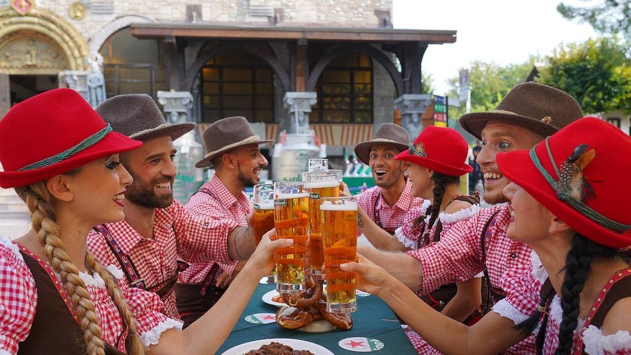 Non mancheranno i gustosi pretzel, accompagnati da salsicce, crauti e grandi boccali di birra. Il parco sarà allestito a tema, con le tipiche bandiere bavaresi a scacchi azzurri e bianchi, grandi balle di fieno, panche e tavoli di legno.