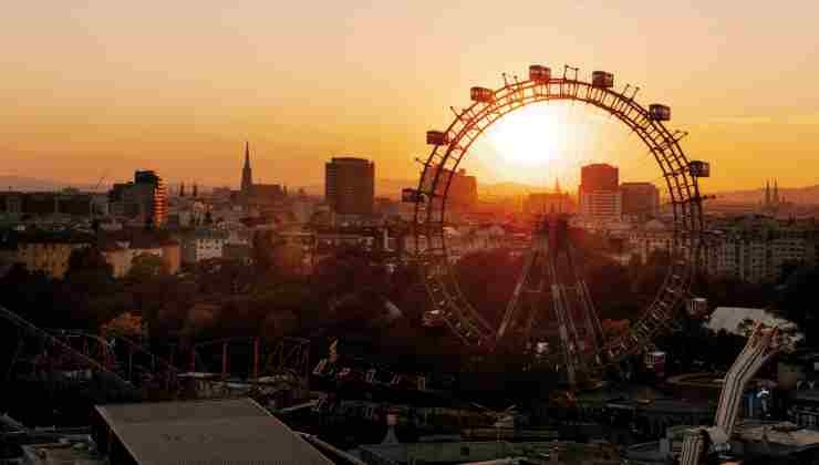 - Vienna dall’alto, per due. Un’altra esperienza imperdibile è quella di ammirare Vienna dall’alto a bordo della ruota panoramica nel Prater. Optando per una cabina privata decorata con eleganza si può godere di una cena gourmet o semplicemente brindare all’amore con lo sfondo della città illuminata al tramonto.