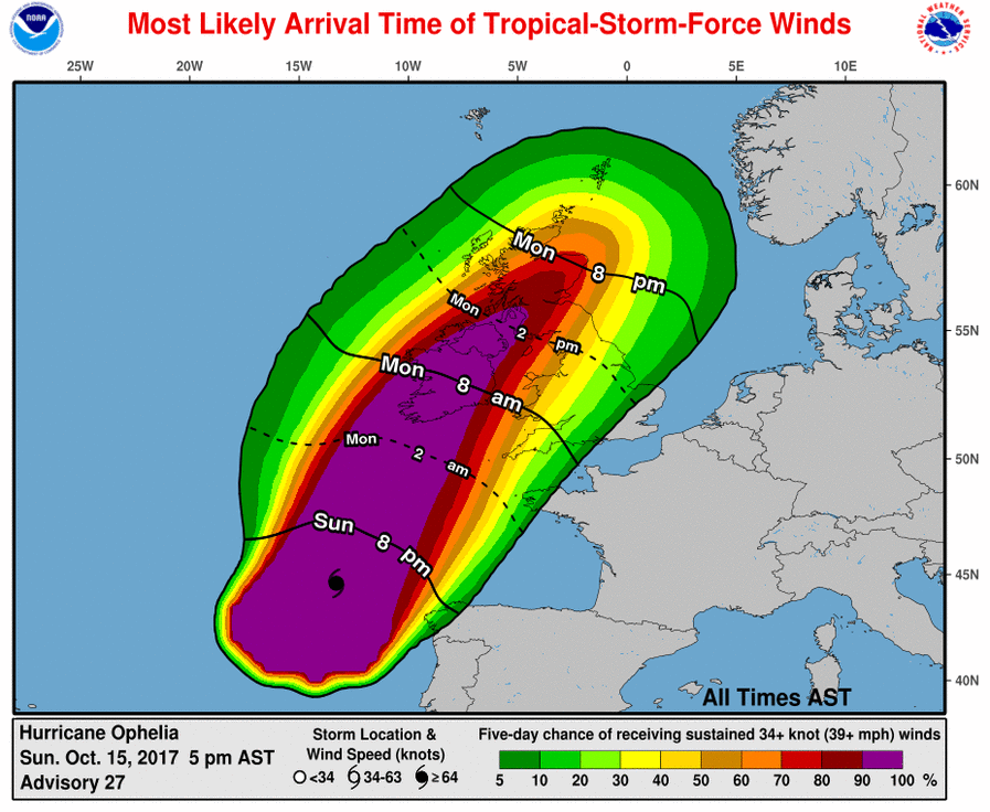 Uragano Ophelia: lunedì colpirà Irlanda e Inghilterra